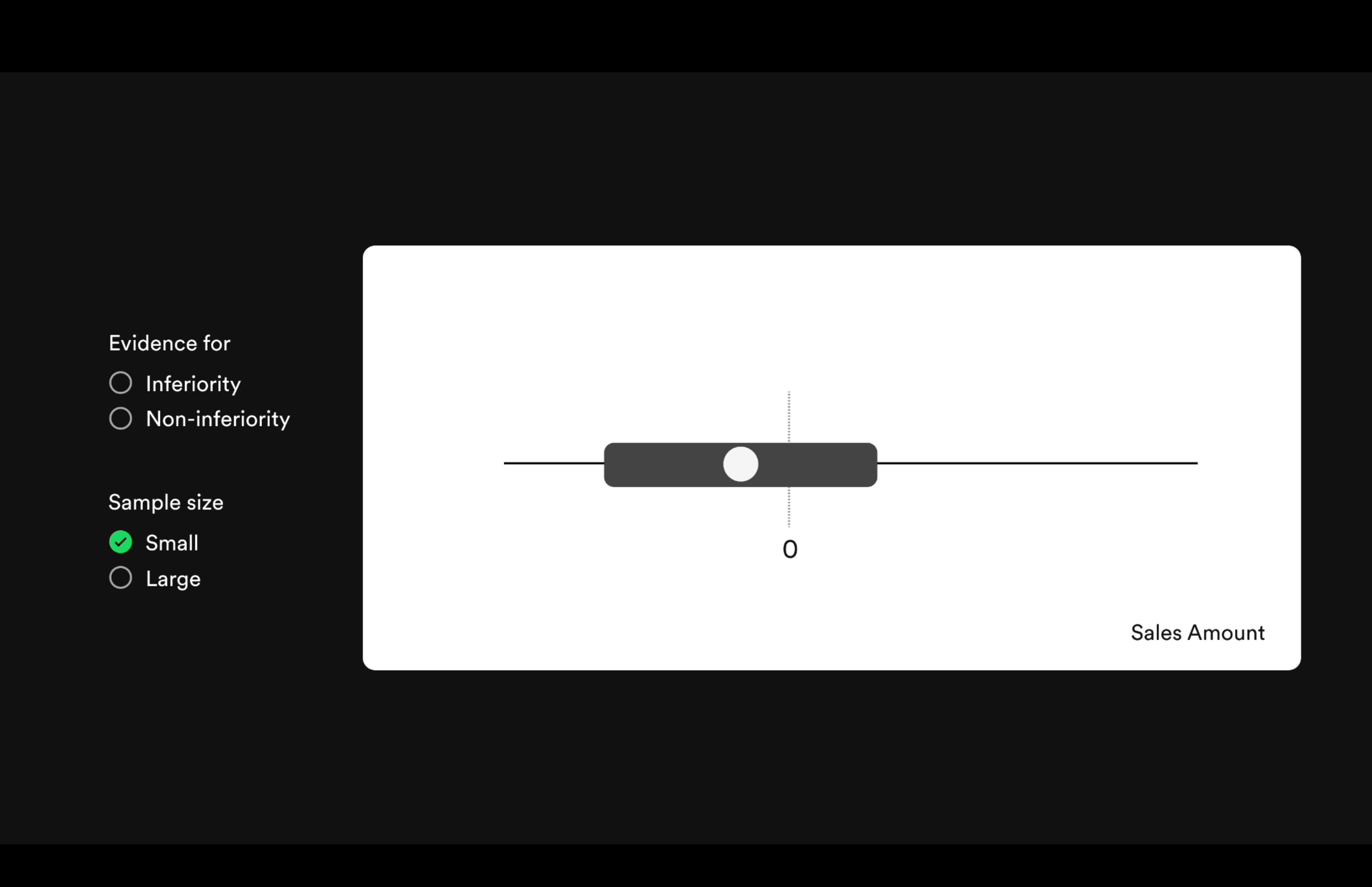 To use non-inferiority tests, you need to select a guardrail metric and decide on a non-inferiority margin (NIM). A non-inferiority margin is the amount with which a metric can deteriorate before you want to consider it a failure. We say that there is evidence that treatment is non-inferior to control if the difference in the metric hasn't deteriorated more than the NIM. To make this more concrete, consider the example of sales amount as the guardrail metric. If you set the NIM to 1%, you only want to ship the change if there is evidence that the total sales amount doesn't decrease by more than 1%.
