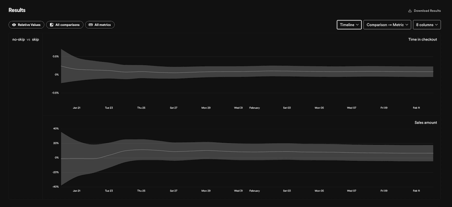 It's notoriously hard to come up with good ideas. A surprisingly large share of experiments, both at Spotify and elsewhere, don't have the expected impact. Some even make the user experience worse. While this insight can be demotivating, it's only natural — and especially so for more mature products. If your product is already great, finding ways to improve it without fiddling too much with the experience your users already love is a big challenge. For this reason, it's not enough to just look at decision metrics — you also need to check your metrics for deterioration. At Spotify, we always check our metrics for deterioration to rule out that they move in the opposite direction from what we expect. In addition, we check for deterioration in a set of metrics that are critical to the business, and perform a series of quality checks for the experiment. These checks make sure that the fundamentals of the experiment's setup are all correct. This includes verifying that traffic is incoming, metrics data is functional, that the proportion in each treatment group matches the expected proportion, and more. It's crucial to do these quality and deterioration checks to detect problematic experiences at an early stage. The checks offer peace of mind and allow you to experiment confidently, without being unsure if they are set up correctly.