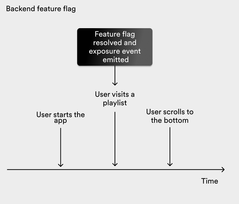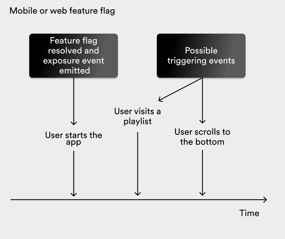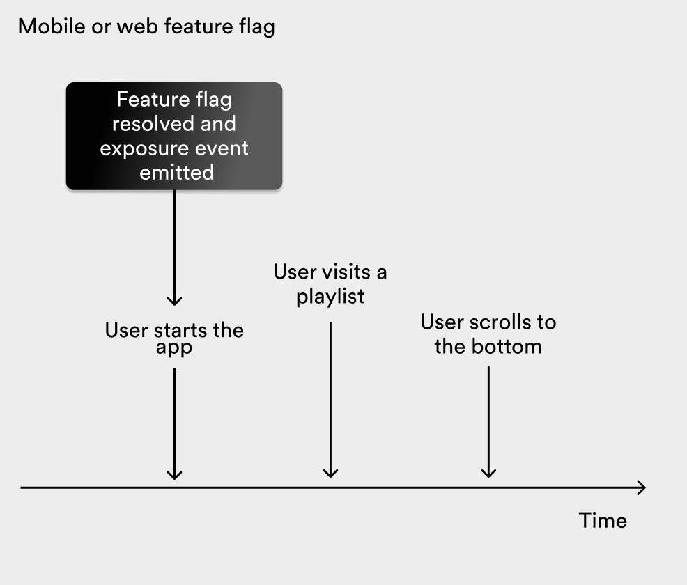 Mobile and web applications often resolve feature flags in batch on app start to avoid flickering. As an example, consider a feature flags that determines whether to show a You might also like section at the bottom of playlists in the Spotify mobile app. Not all users will visit a playlist, and not all will scroll to the bottom. This means that all users who start the app emit an exposure event for the feature flag, regardless of if they see the new section.